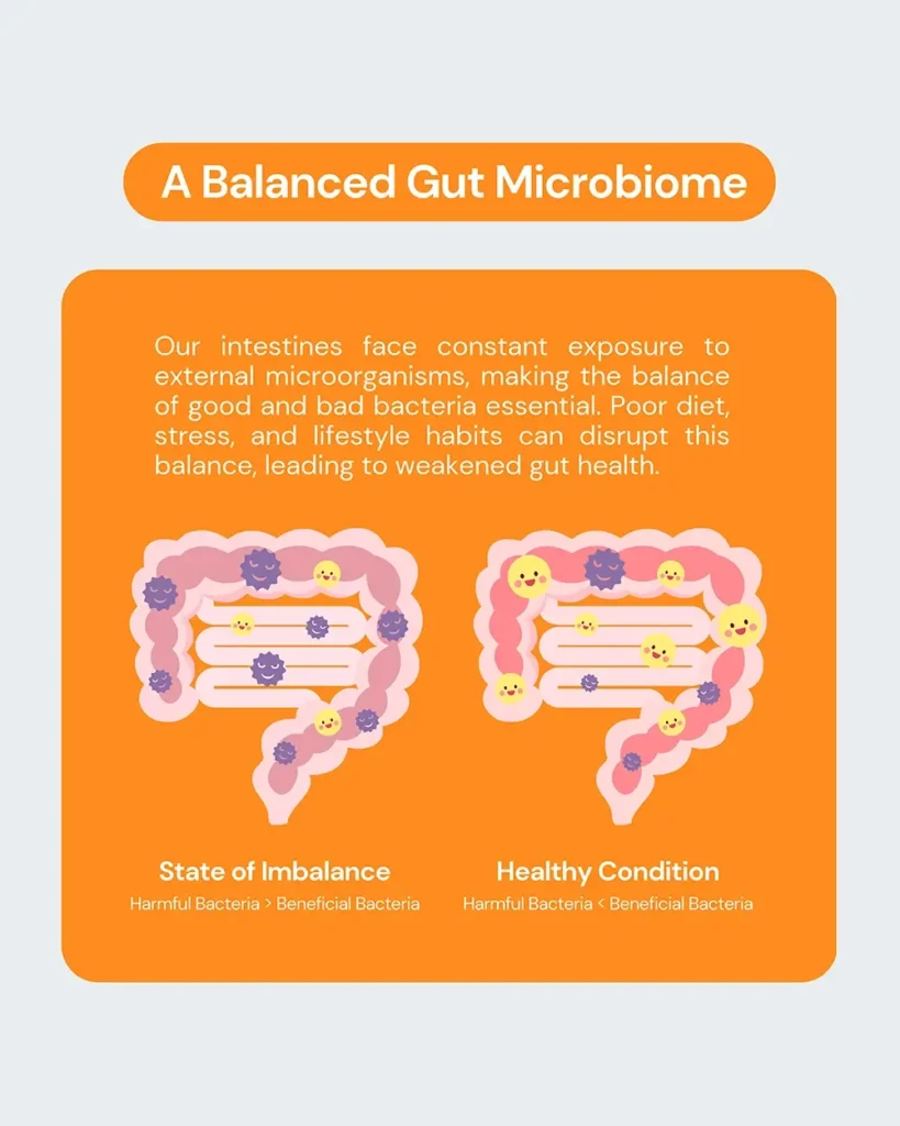 About 70% of the immune system sits along the gut wall (gut-associated lymphoid tissue). A balanced microbiome trains immune cells, supports a strong gut barrier, and helps your body respond smarter to everyday challenges.