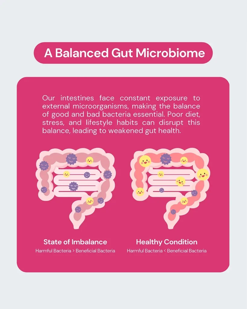 Microbial balance helps keep inflammation in check and supports the skin barrier from within. When the gut is off balance, inflammation may flare, contributing to concerns like acne, eczema, sensitivity, or dullness. A healthier gut often shows up as calmer, clearer, glowier skin.